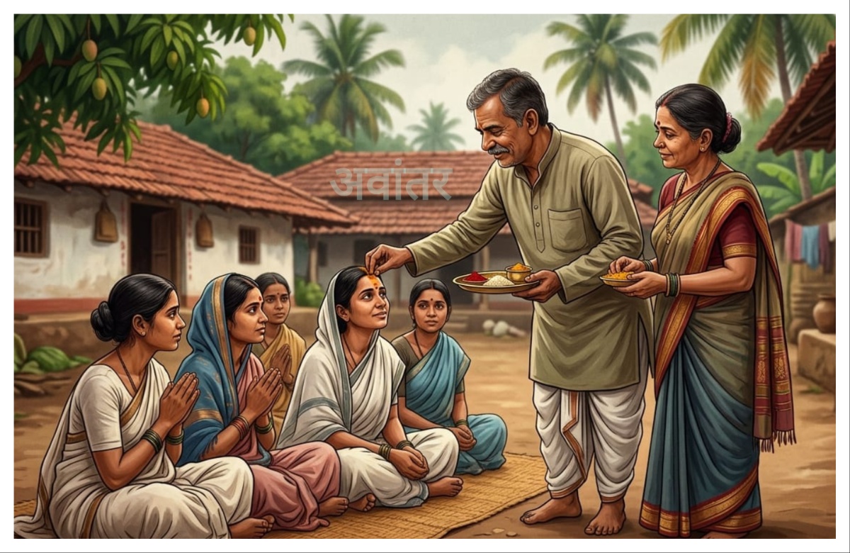 “संध्याकाळी अजून थोडी बायका येतली, तू बोलऊक नाय तेंका… ती इली काय तू तेंका कुंकू लाव.”