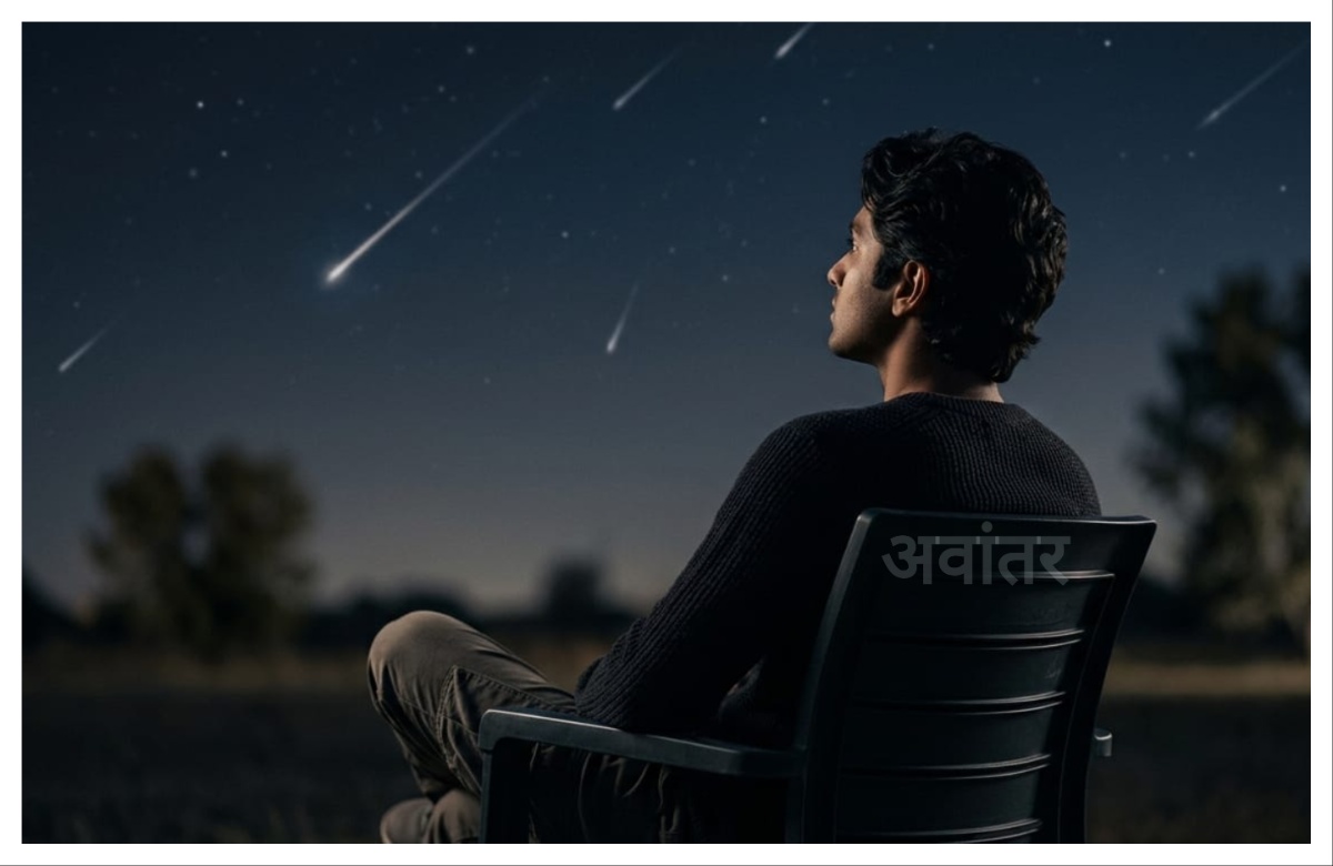 मी दूरवर क्षितिजाकडे नजर टाकली आणि स्तिमित झालो. आकाश उजळवून टाकत उल्कावर्षाव सुरू होता. तिला थांबवण्याची माझ्याकडे मागणी करत एक-एक तारा तुटत होता.