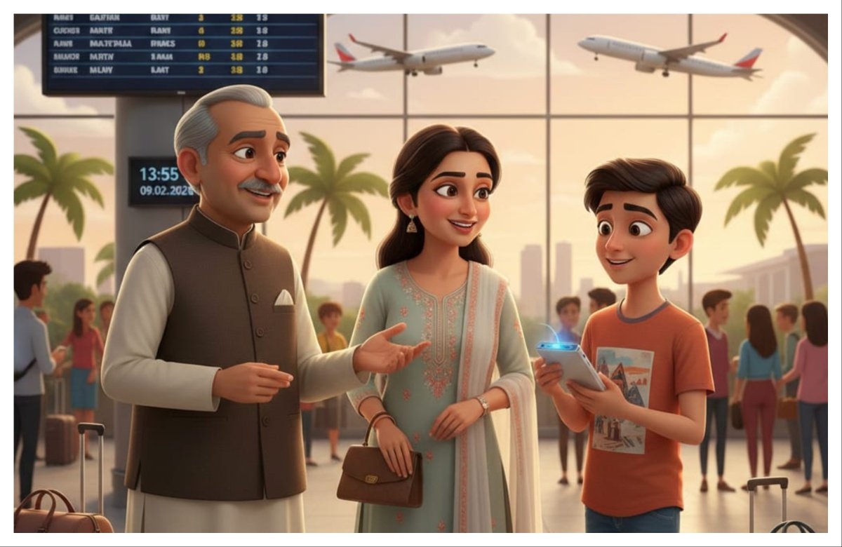 त्यांना म्हणाले मी, तुम्ही फक्त विमानाची तिकीटं काढून द्या आमची, बाकी सगळं आम्ही बघतो. त्यांना काहीतरी सवलती असतात म्हणे. प्रवास थोडा स्वस्त पडतो इतकंच!
