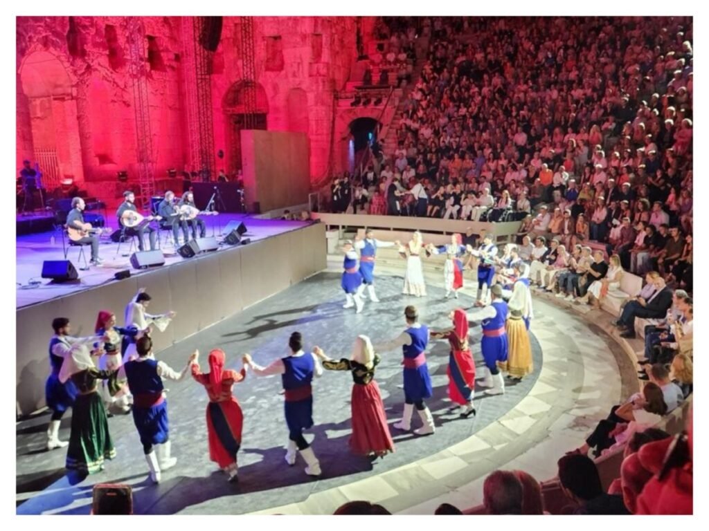 कार्यक्रम जसजसा पुढे जात होता, तसतसे वेगवेगळ्या शैलींमध्ये संगीत सादर होत होते. गडद निळ्या, तांबड्या आणि शुभ्र रंगांच्या ग्रीक पारंपरिक वेशात सजलेले नर्तक स्टेजखालील प्रशस्त जागेत अर्धवर्तुळाकार, वर्तुळाकार अशा विविध रचना करत होते. ग्रीसमधील कालामातियानोस, सिर्तो, त्सामिको, झोर्बास असे काही नृत्यप्रकार त्याच्या समन्वय साधलेल्या हालचालीतून त्यांनी सादर केले. त्यांच्या पदन्यासात शतकानुशतके चालत आलेला लोकसंगीताचा वारसा दिसत होता, त्या क्षणी ते सर्व काही ताजे आणि जिवंत भासत होते.