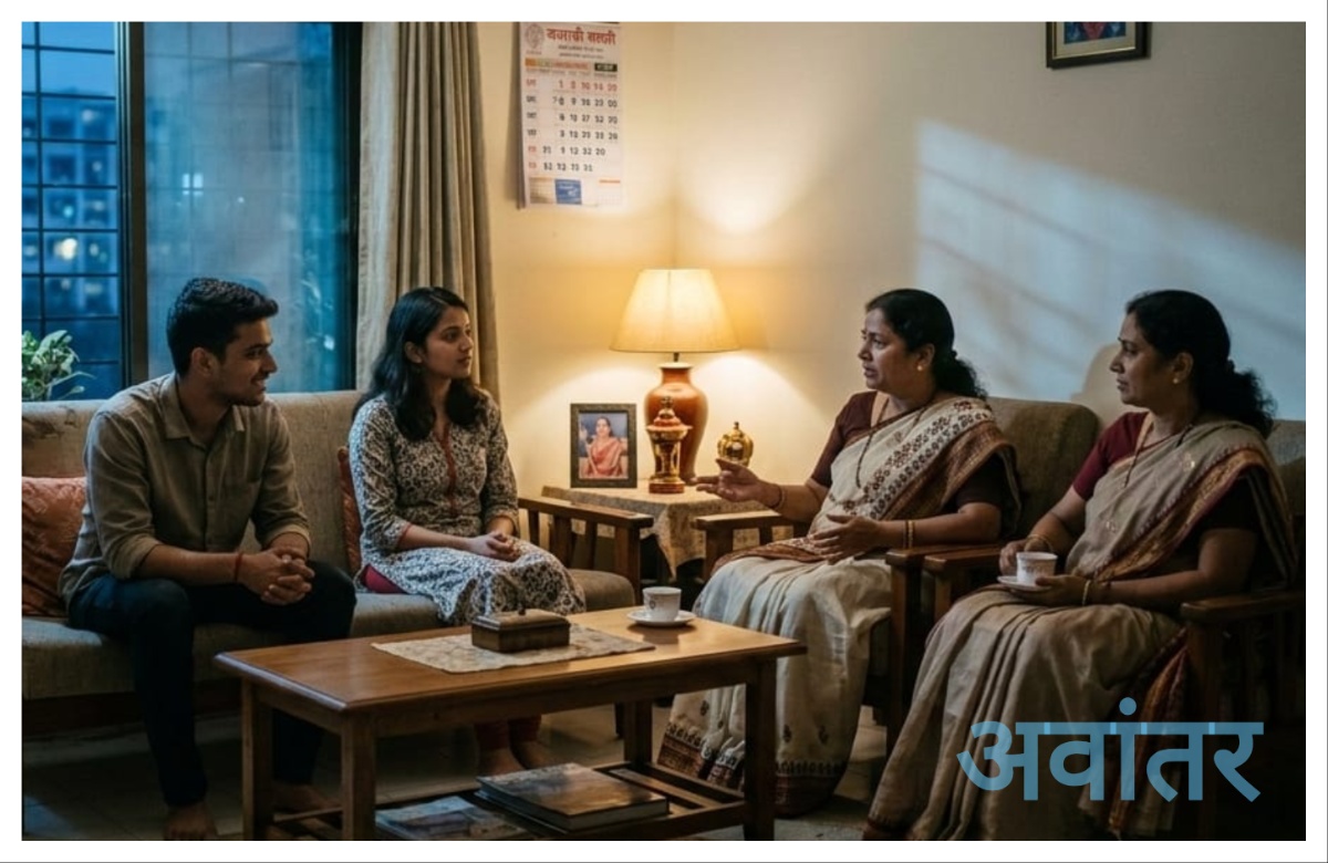 इतक्यात सोमेश ऑफिसमधून आला. “ओहो, लग्न ठरलेलं दिसतंय. चला, आता हॉल बुक करावा लागेल!”